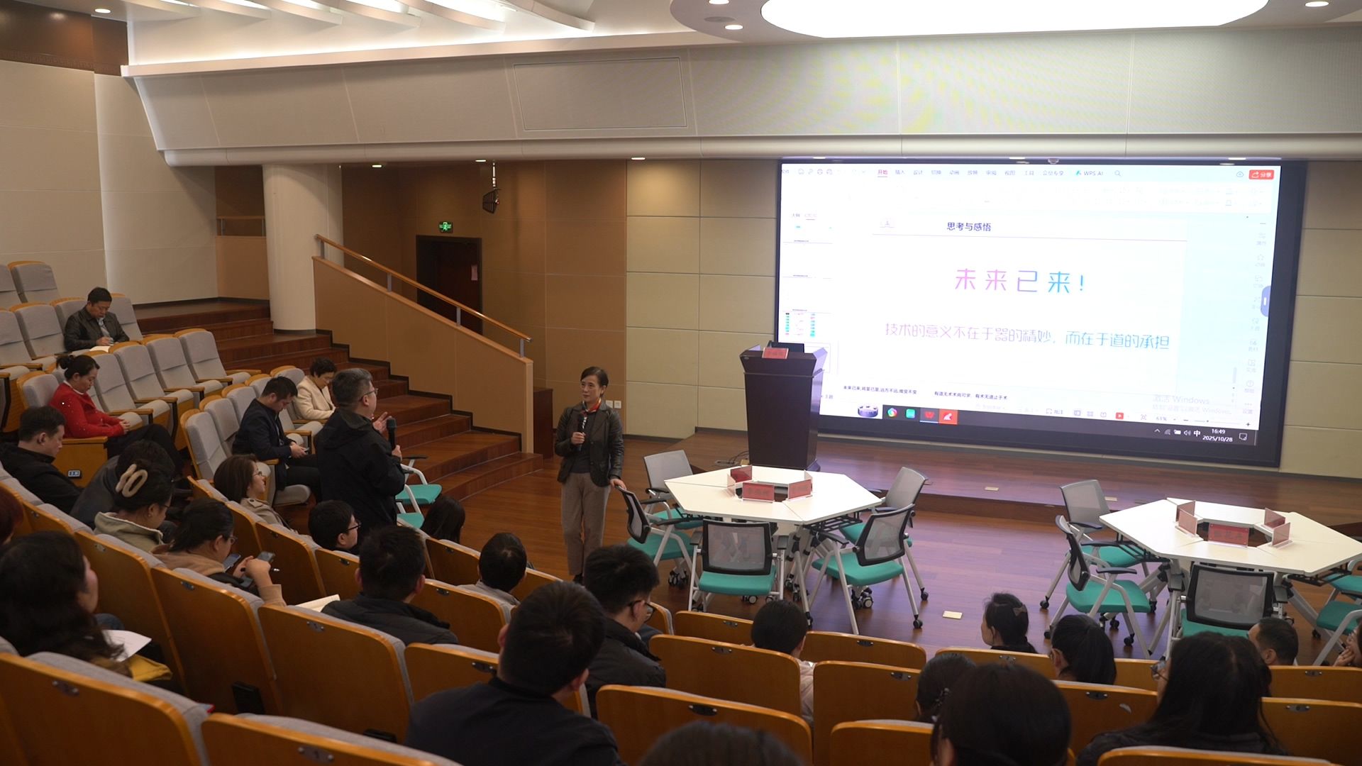 朱鑫首先介绍了活动的核心目的及流程,表示,本次活动紧扣新时代全国高等学校本科教育工作会议精神,聚焦智慧教学探索与交流,旨在通过示范教学与深度研讨,推动智慧教学工具与人工智能技术在课堂教学中的融合应用,助力教学理念更新与教学模式创新。