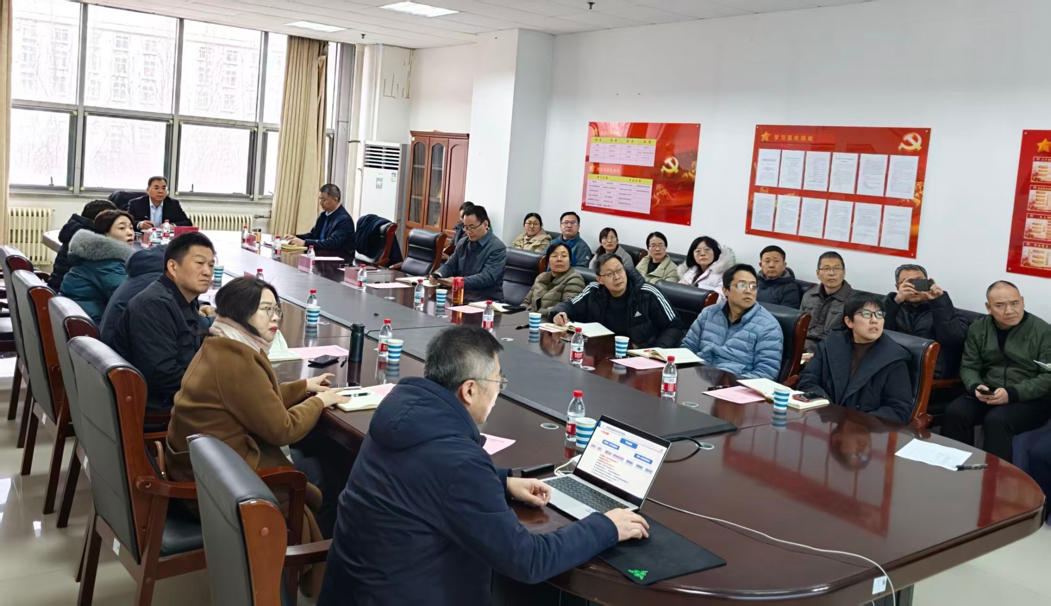 会上,雷敬卫就学院发展建设现状作了系统汇报。他重点围绕师资队伍建设、人才培养、学位建设、科学研究及社会服务等方面进行了详细介绍,并深入剖析了当前发展面临的主要问题,提出了下一阶段的应对措施。听取汇报后,林俊堂与参会人员就研究生培养、专业建设、教学管理、科研创新、国际合作交流等议题进行了深入交流,并提出相关指导建议。