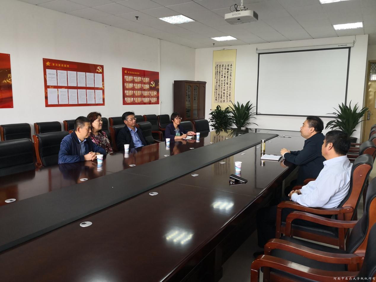 2018年10月8日,山西药科职业学院院长张震云,教务处处长刘林凤等一行4人到药学院考察交流。药学院院长朱建光、副院长董诚明以及党政办相关人员参加了座谈会。