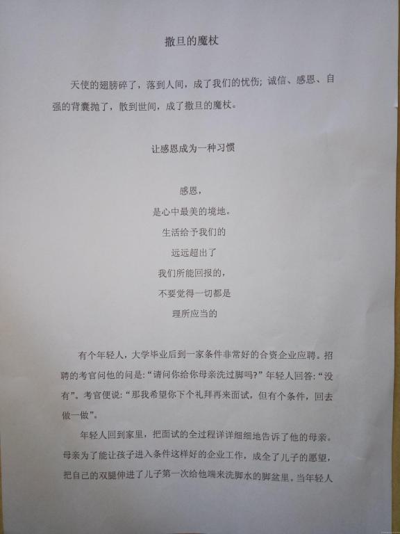2016级中药班周蕾的《撒旦的魔杖》在励志成才征文活动中获得一等奖